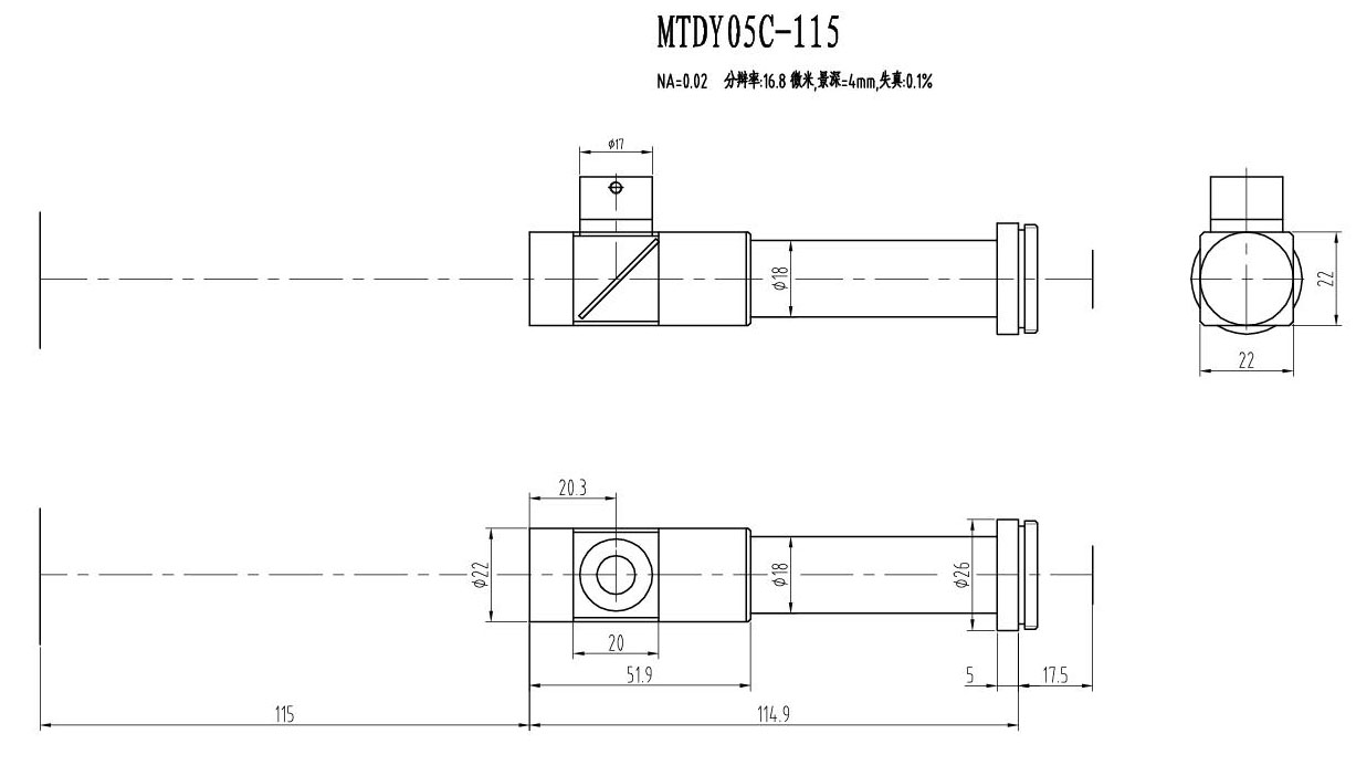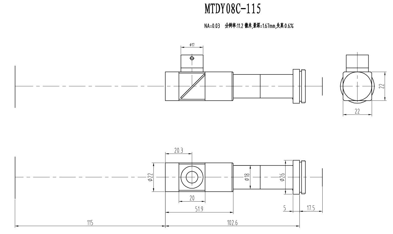 ● 遠心鏡頭用于工業(yè)精密測量,畸變極小。高性能的可以達到無畸變。